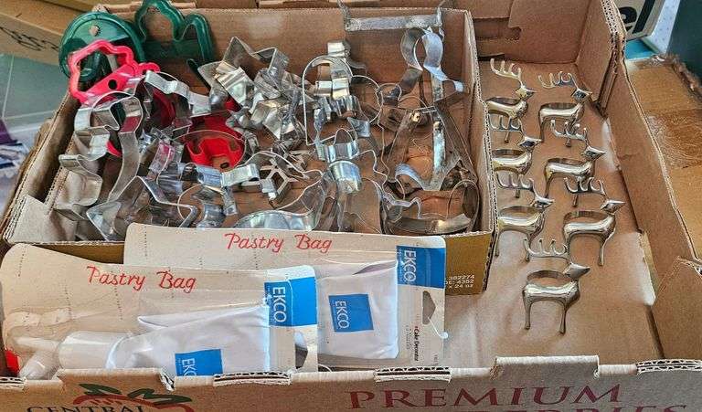 LOT 59 - Holiday Cookie Cutters, Reindeer Napkin Rings, Pastry Bags