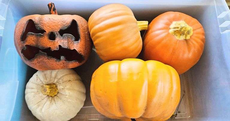 LOT 83 - Five Decorative Pumpkins, Jack-o'-lantern