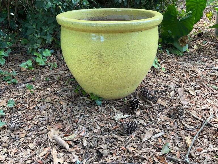 Large yellow glazed pot 18.5x16. Heavy, bring help