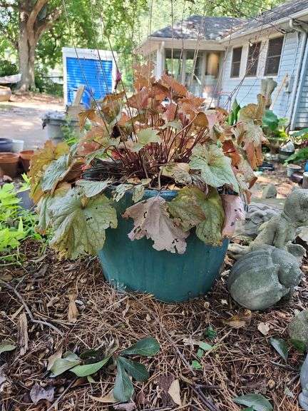 LOT 107 - Coral Bells Perennial in Large Ceramic Blue Pot
