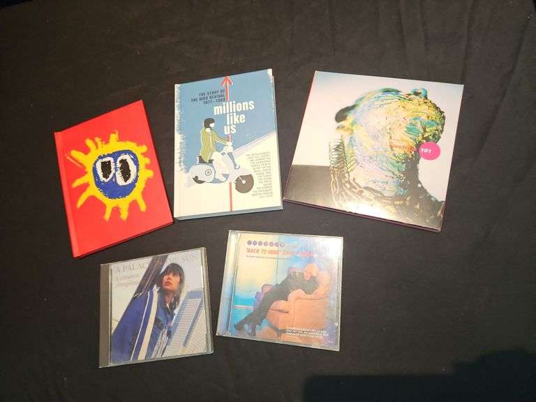 Four CD Mod music revival1977-1989 'Mllions Like Us' box set and book. Primal Scream 4 CD set with booklet. Electribe 101 'Electribal Memories' box set. 'A Palace in the Sun' compilation CD. 'Back To Mine Dave Seaman' club music CD.