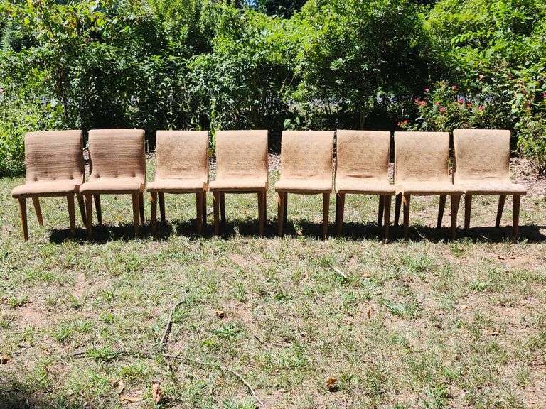 MCM Dining chairs by Louis Diamond design, Fabric original from 1950s - Matches Dining table in Lot 93. Eight chairs - 2 in one fabric for heads of table, 6 in another fabric.