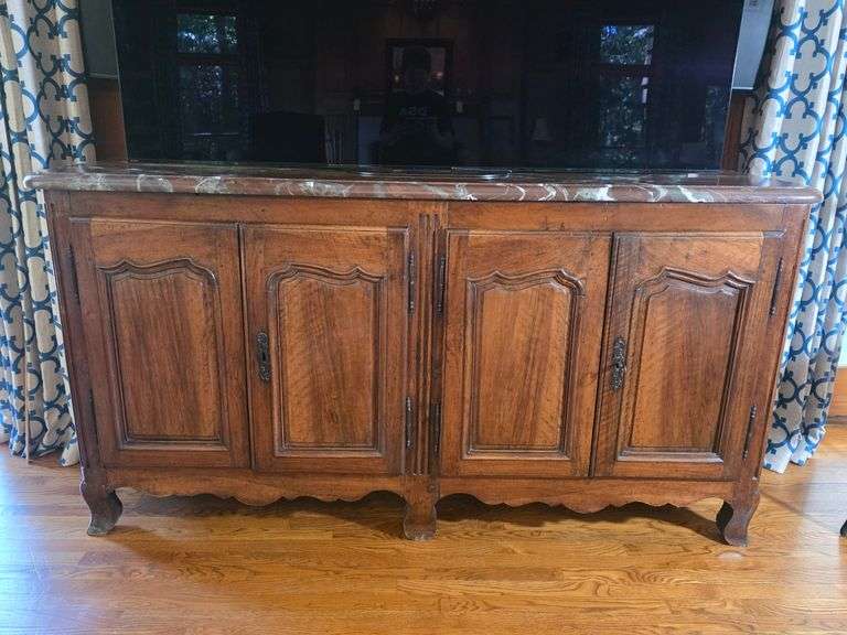LOT 122 - Antique Louis XV Style Cherry Enfilade Marble Top Sideboard