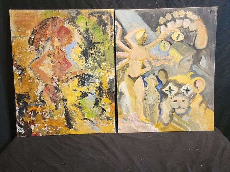 LOT 3 - Two Abstract Oil Paintings on Board by J. William Hill- 16" x 20"