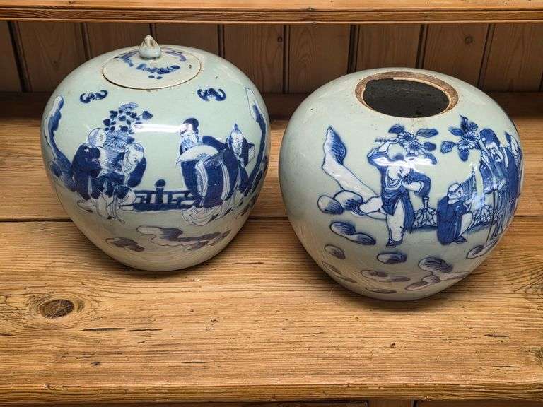 LOT 165 - Pair of Vintage Chinese Celadon Porcelain Ginger Jars- one missing lid