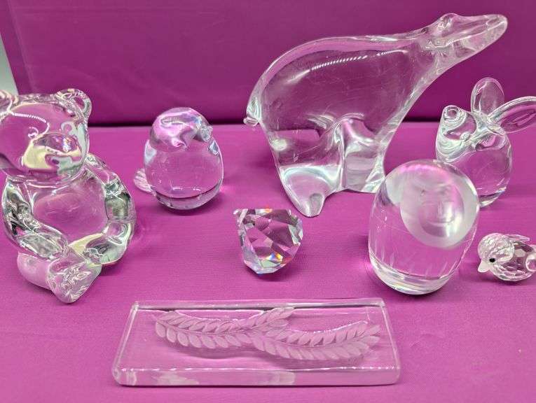 Swarovski. Princess House W Germany, Sweden, and unknown: Polar bear (4" tall x 5" long), mouse bird, teddy bear, mini duck, Eskimo, diamond shape, and knife rest. Great for paper weights or shadow box décor.