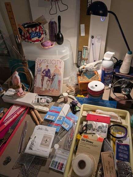Darning egg, mini fan, lights, scissors, rulers, all kinds of sewing accessories and décor.
