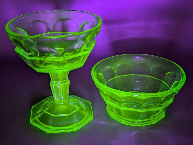 Tearoom 4 1/2" tall footed sherbet dish and 4 1/2" diameter finger bowl. No chips.
