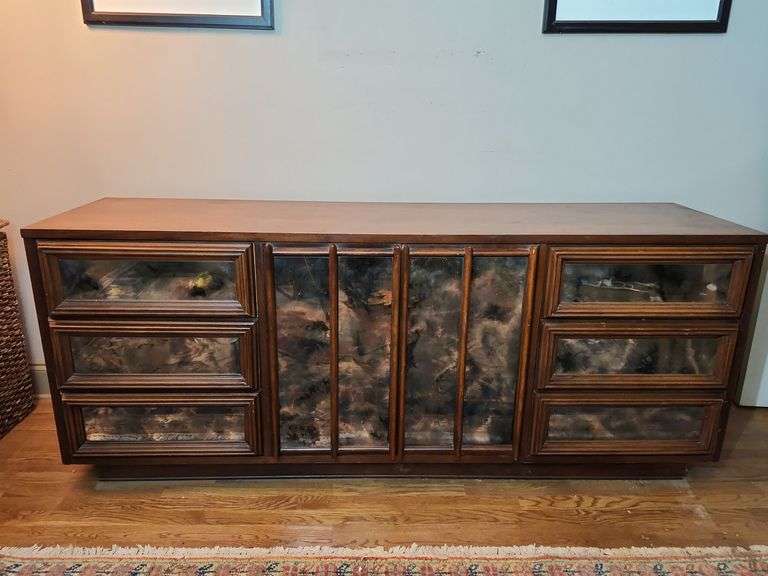 LOT 28 - MCM Mirrored Brutalist Dresser- No Mirror Above Mirrored Fronts.