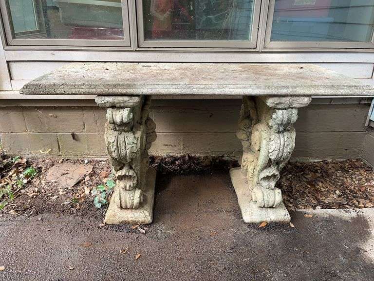 LOT 116 - Concrete Table with Carved Bases