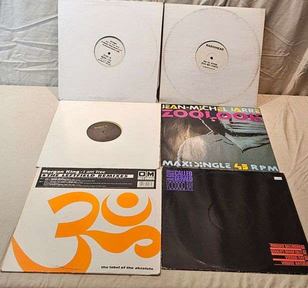 2 Radiohead 'White Label' Exclusive DJ Remixes. Previously unreleased 'What About U.S.' and 'Go To Sleep'. Jark Prongo 'Shake It' on yellow vinyl, plus other artists of the era.