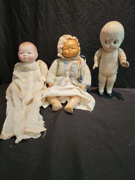 LOT 181 - Vintage Porcelain Doll thought to be Grace S Putnam, Composite Kewpie Doll & Plastic Doll Babies