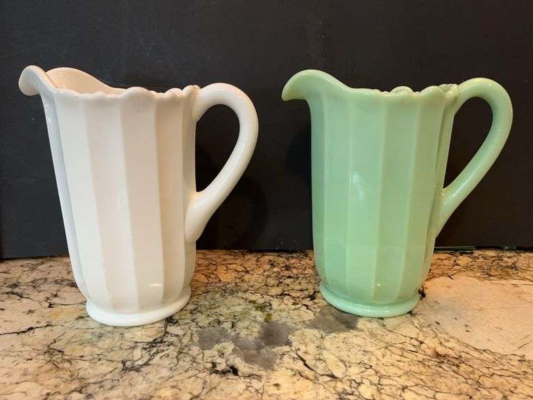 Vintage Jadeite and milk glass pitchers. Bring packing materials