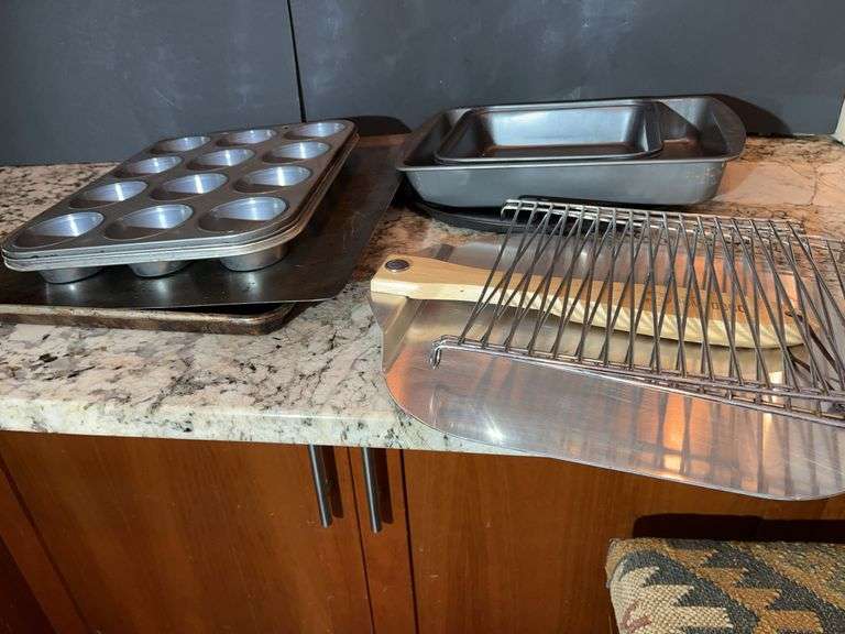 Ekco muffin tins, racks, pizza pan, cookie sheets, baking pans.