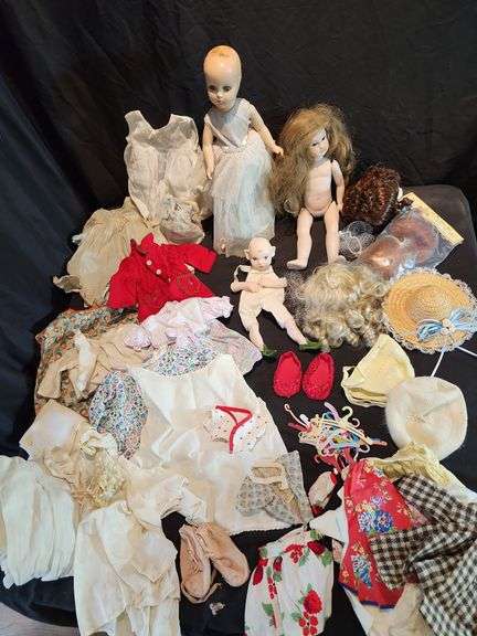 LOT 183A - Vintage Dolls, Wigs, Clothes, Accessories & More