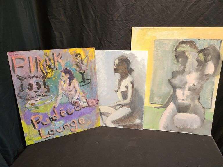 LOT 105 - 3 Oil on Boards - Nudes by J William Hill