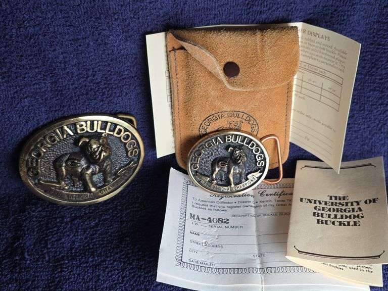 LOT 33A - 2) C&S Georgia Bulldogs 1980 National Champions Belt Buckles: small with pouch and COA