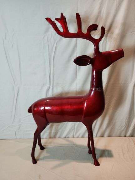 LOT 206A - Red Metal Reindeer - 34"H x 23"L, evidence or repair on neck, Tip of one Antler Missing - See Photos