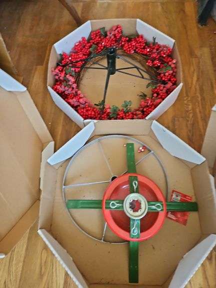 LOT 210A - 3 Different Christmas Tree Stands, Berry Wreath