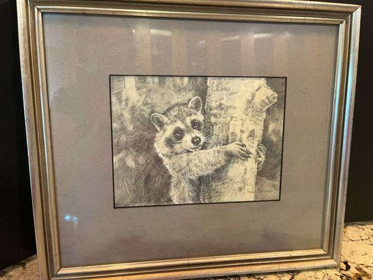 LOT 247 - Sarah Brown Graphite, Framed Sketch of Raccoon