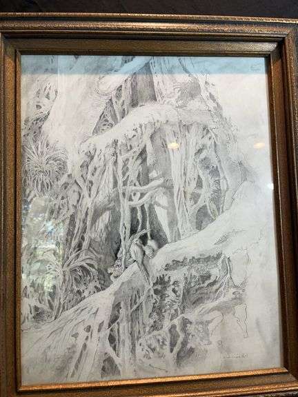 Local artist draws jungle scene. 21x24. Signed
