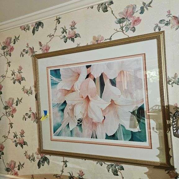37"x30" signed, numbered watercolor print of Honeysuckle. 22"x26" framed Magnolia flowers painting. 23"x19" framed, matted Magnolia flowers watercolor print. Signed and numbered. Sitting Room.